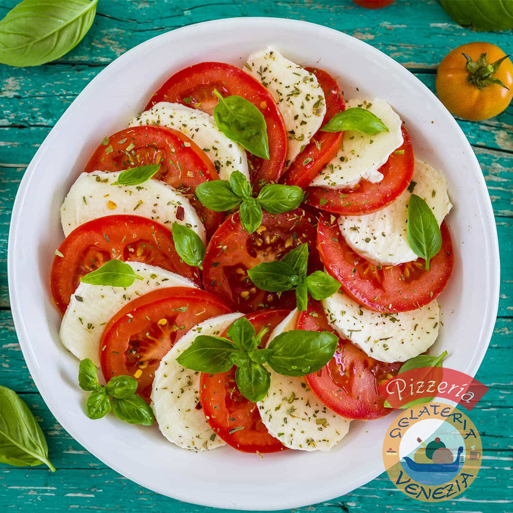Tomate cherry, mozarella, albahaca y aceite de oliva.